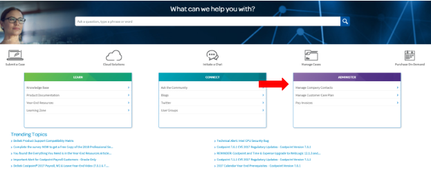 1. On the Deltek Support Center home page, select Manage Company Contacts.