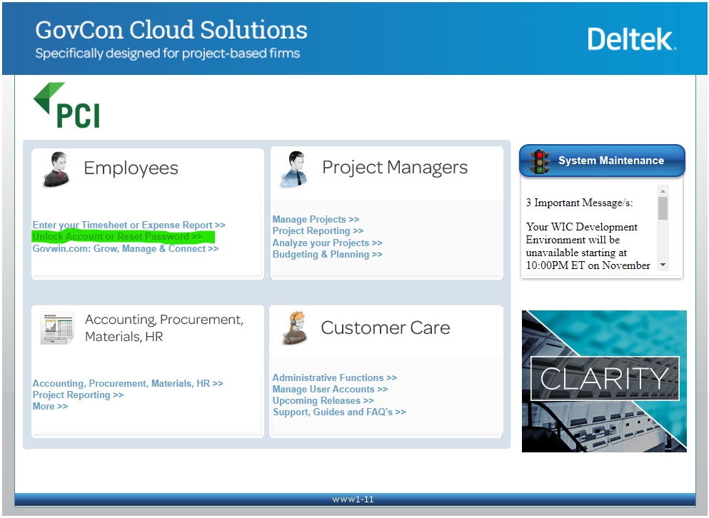 From the Portal Select Unlock Account or Reset Password from the Employees Quad