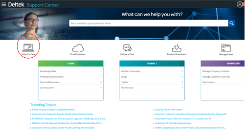 Once inside Deltek Support Center, select Submit a Case from the menu in the middle of the screen.